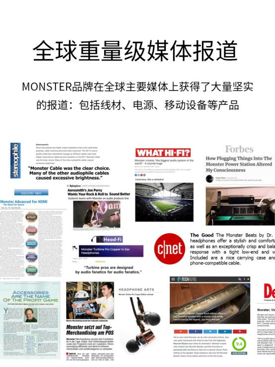 发展至今,魔声(Monster)已成为全球知名的线材、耳机品牌,获得超过300项专利,在160多个国家和地区提供超过5000个品类的产品。